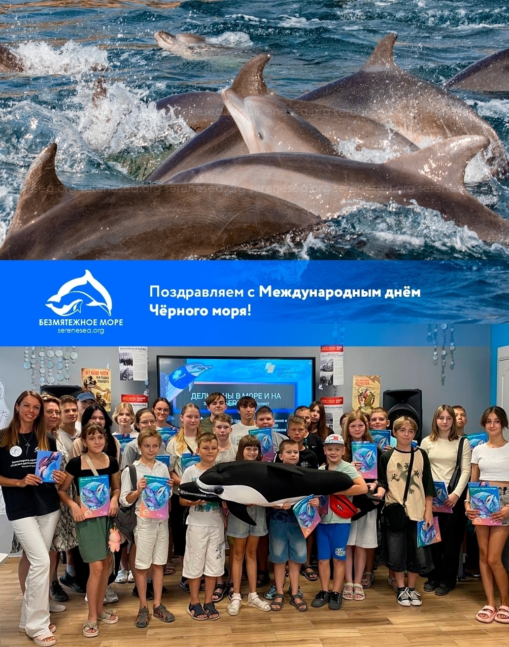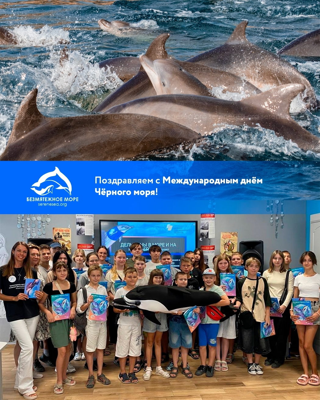 Эта праздничная встреча с рассказом о происхождении, видах, образе жизни и вопросах спасения китообразных Черного моря прошла также в рамках нашего проекта «Дельфины в море и на берегу» при поддержке Фонда президентских грантов.