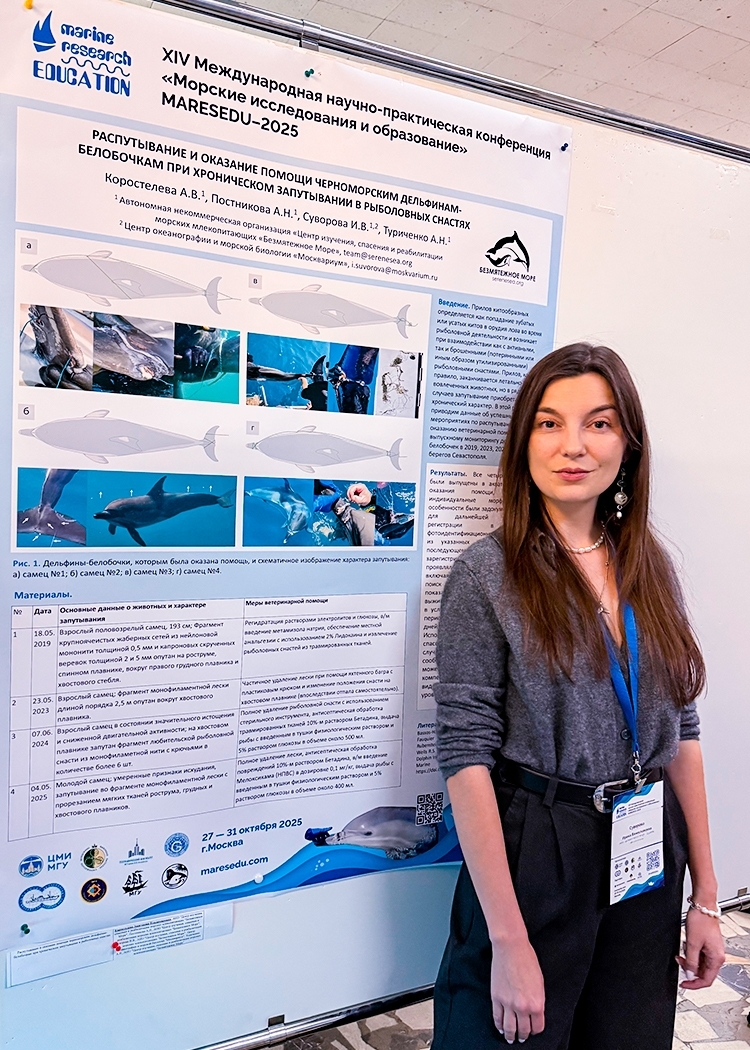 Поучаствовали также на круглом столе «Пластик водных сред» в рамках коллективного доклада «Проблема запутывания морских млекопитающих в водах России», для которого предоставили свои данные по хроническому запутыванию и проглатыванию пластика китообразными в водах Крыма.