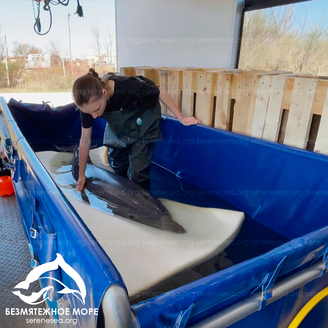 7 апреля 2024 года Кимми был перевезен на нашем специализированном автомобиле в Балаклаву. Он отлично перенес транспортировку. Перед выпуском была проведена процедура мечения задней кромки спинного плавника с использованием стандартной идентификационной бирки: была обеспечена местная анестезия, прокол был произведен методом пункционной биопсии с удалением небольшого кусочка ткани спинного плавника для минимизации давления штанги бирки на окружающие ткани и предотвращения вдавливания эпидермиса в дерму. Все инструменты, контактировавшие с плавником, были подвергнуты холодной стерилизации. В исследованиях сообщалось о незначительном или отсутствующем видимом воздействии на здоровье дельфинов процедур мечения спинных плавников стандартными идентификационными бирками, в том числе, при повторных наблюдениях через 20 лет после мечения (Irvine et al., 1982; Balmer et al., 2011; Rayan et al., 2022).