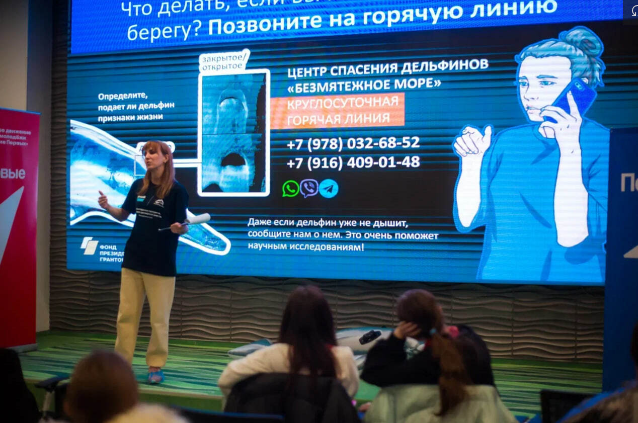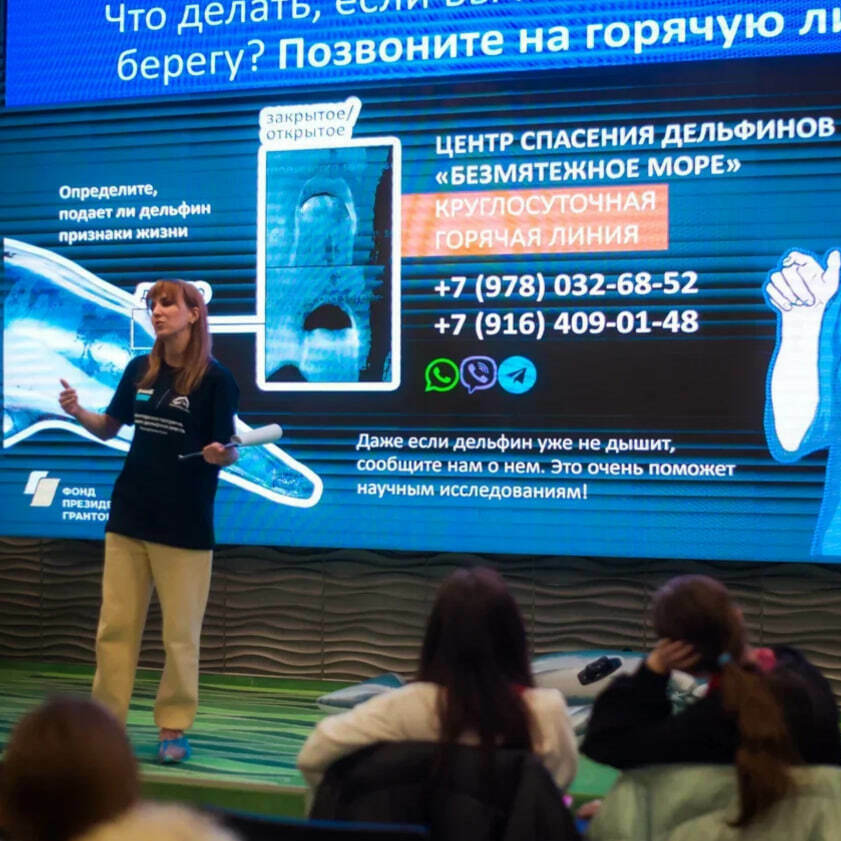 Президентский грант – проект «Людям о дельфинах»; открытые образовательные мероприятия в 3-х регионах: Крым, Севастополь, Москва